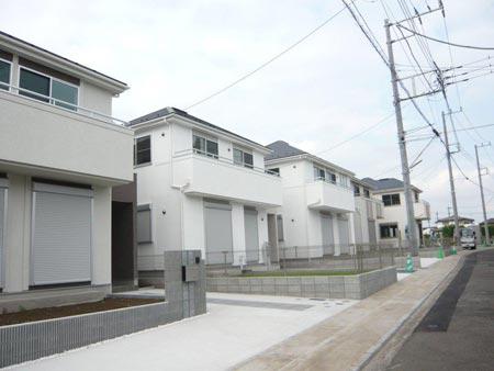 横浜 相鉄線「瀬谷」駅徒歩19分 新築一戸建 販売済 土地126.51㎡〜130.61㎡ 建物97.71㎡〜99.09㎡ 各4LDK カースペース2台可、道路との高低差もなくほぼ平坦で歩けます、外観は一部タイル張りのお洒落な建物です、南道路に付き陽当良好です 全23棟今回販売4棟
